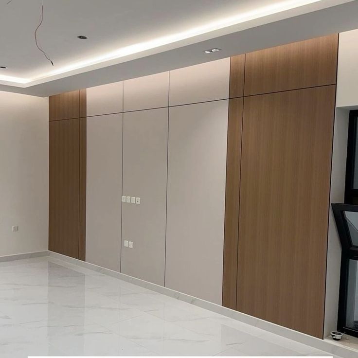 - شاشات جبس بورد مدمجة مع التلفاز وأرفف تخزين.